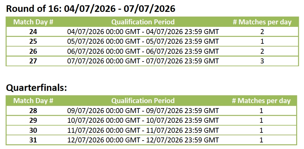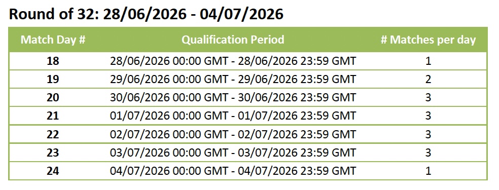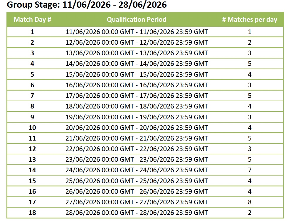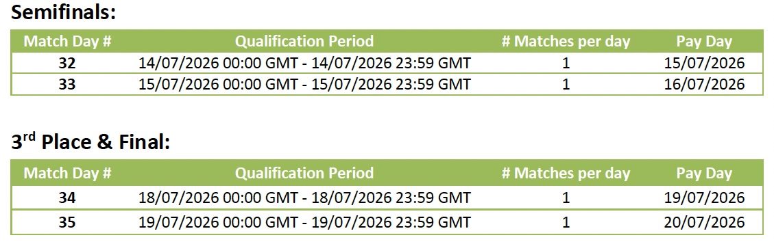 - Master Pick Qualification Period: 11/06/2026 00:00 GMT - 19/07/2026 23:59 GMT (non-continuous). Daily 00:00 GMT - 23:59 GMT.